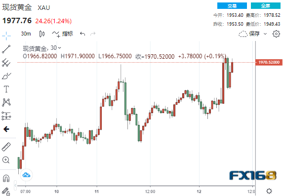 (现货黄金30分钟走势图,来源:FX168)