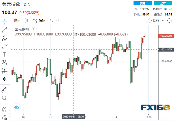 布雷纳德的言论传来之后,美元指数DXY短线一度上扬近30点,并刷新日高至100.28,自CPI指数公布后触及的99.76低点则大涨超50点。