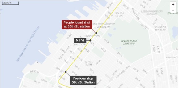 目击者亚夫·蒙塔诺(Yav Montano)称,他在发生枪击事件的地铁车厢里,他描述了现场的混乱情况,称他看到地板上有很多血,枪声听起来像烟花。