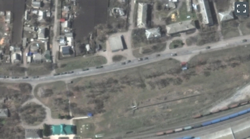 这些照片由美国太空技术公司Maxar于4月8日拍摄。照片显示,一支由数百辆汽车组成的大型俄罗斯军事车队正在向南穿过顿巴斯以北的乌克兰城镇维利季·布鲁克(Velykyi Burluk)。