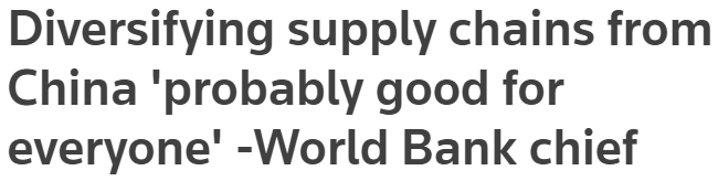 FX168财经报社(北美)讯 周二(4月12日),世界银行行长大卫·马尔帕斯表示,世界各国正在努力使供应链多样化,减少对中国的依赖,这“可能对每个人都有好处”。