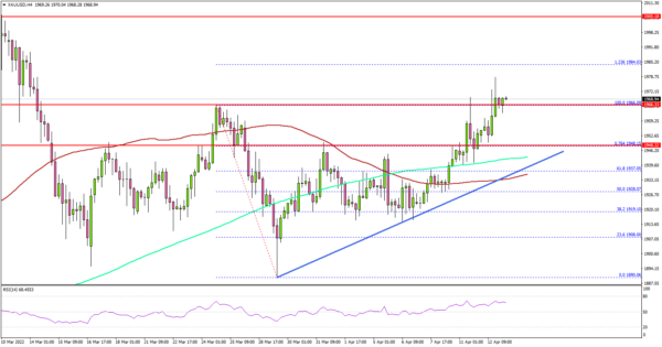 24K99讯 周三(4月13日)欧市早盘,现货黄金短线出现一波急涨,金价再度突破1970美元/盎司关口。知名机构Titan FX周三最新撰文,对金价技术前景进行分析。