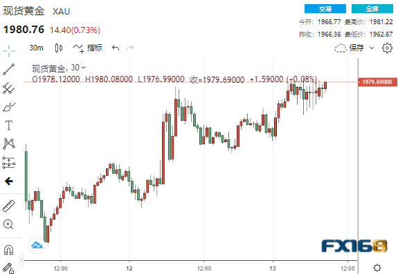 在最新PPI数据发布后,黄金市场出现了新的势头。美市盘中,现货黄金价格上涨超0.7%,至1981.22美元高点,创下3月14日以来的最高水平。