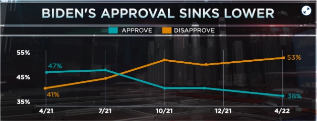 拜登对乌克兰战争的处理也仅仅获得了40%的人的赞成,49%的受访者持反对意见。他提出的对未实现收益征税的新提案将美国分成了两派,43%的人支持,而反对该提案的人也有43%。