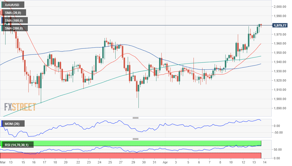 24K99讯 周四(4月14日)亚市盘中,现货黄金维持升势,金价刚刚再度触及1980美元/盎司关口。FXStreet首席分析师分析师Valeria Bednarik最新撰文,对金价技术前景进行分析。Bednarik称,尽管近期面临修正性回落风险,但金价上行压力仍完好无损。