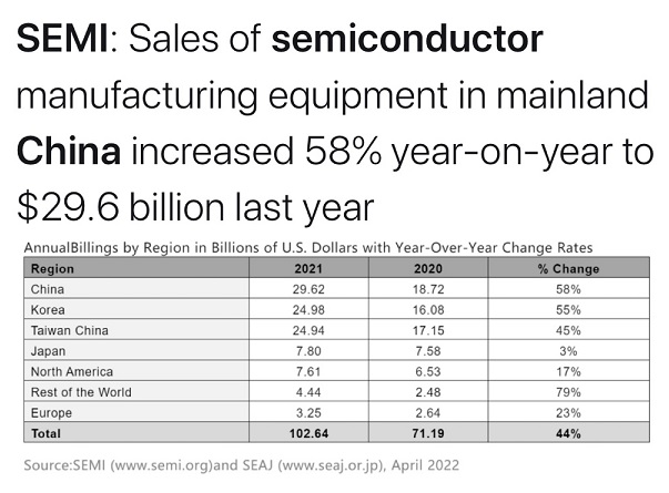 2021年销售额飙升58%!中国大陆蝉联全球最大半导体设备市场