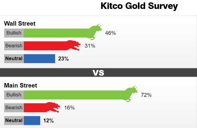 散户投资者则更加坚定地看好黄金的表现。Kitco的调查显示,在参与调查的1254名散户投资者中,72%的人预计金价会上涨,16%的人预计金价会下跌,12%的人持中性看法。这是自去年11月19日以来的最高参与率。