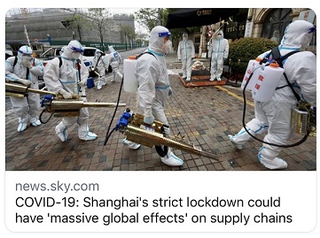 FX168财经报社(香港)讯 专家告诉英国天空新闻,上海的“封城”和中国的新冠清零政策可能会对供应链产生“巨大的全球影响”。