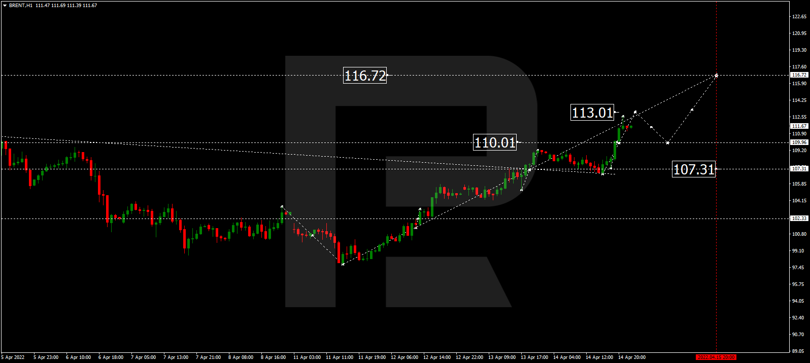 布伦特原油仍在向113.00上涨。稍后,市场可能回落至110.00,然后恢复上升趋势,上行短期目标为116.70。