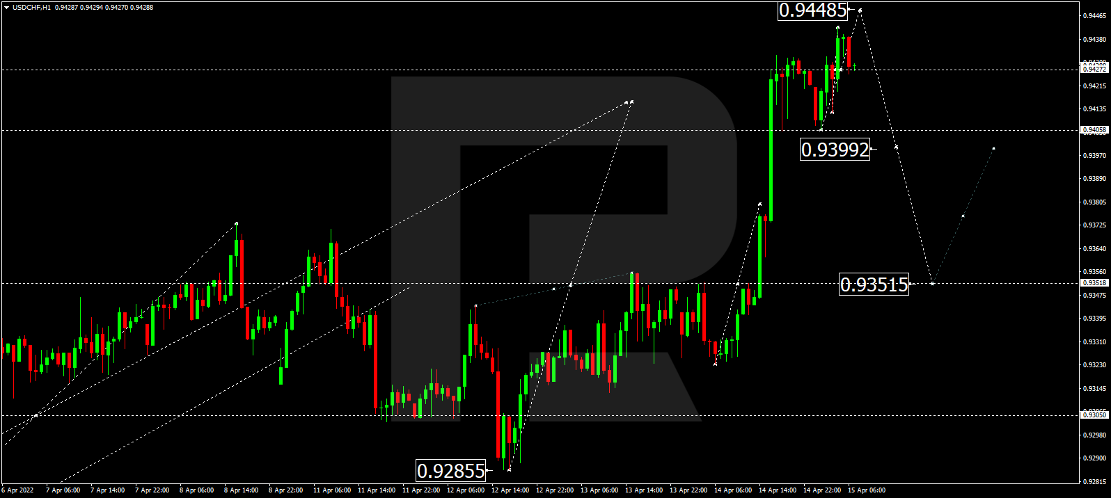 美元/瑞郎仍在0.9427附近巩固。该货币对可能会形成一个升向0.9448的上升结构。之后,汇价可能开始新一轮下跌,突破0.9399,然后继续下跌至0.9351目标位。