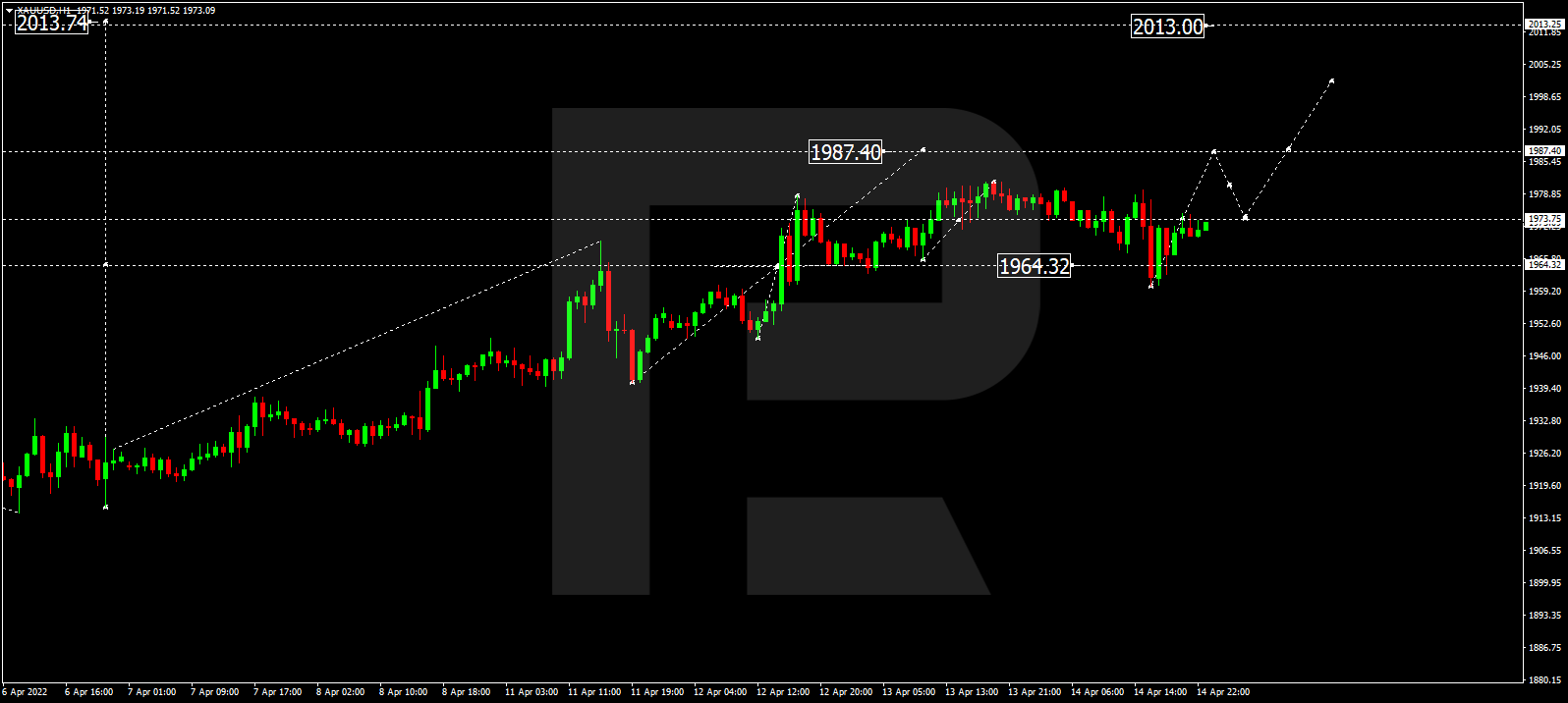 金价继续涨向1987.40。稍后,市场可能开始新一轮调整,达到1974.00,然后恢复上行趋势,上行短期目标为2013.00。