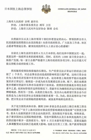 另外,在上海的1万多家日本企业面临巨大的经营亏损。对此,日本国驻上海总领事馆致函上海副市长宗明。信中称,目前在上海生活居住着约4万日本侨民,他们也和中国朋友们一起,直面这样一场前所未有的困难局面。同时,还有约11000家日资企业在上海落户发展,每一家日企都严格遵守上海市政府的各项方针,各自尽最大可能支持配合政府防疫工作。