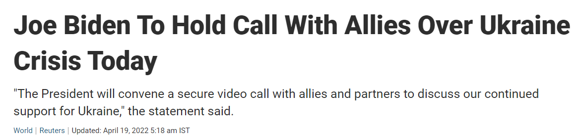 FX168财经报社(香港)讯 据路透社报道,白宫在一份声明中表示,美国总统拜登将于当地时间19日与盟国举行电话会议,讨论乌克兰危机,包括如何协调追究俄罗斯的责任。他将与盟国和合作伙伴进行安全视频通话,讨论对乌克兰的持续支持,以及作为密切协调的一部分,努力追究俄罗斯的责任。