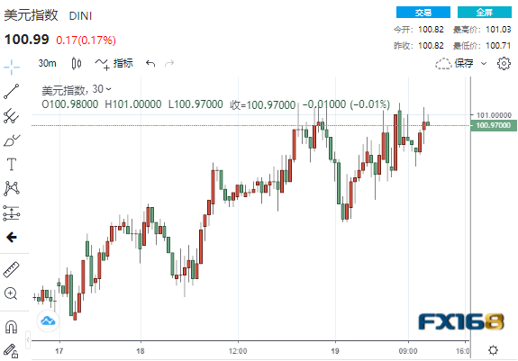 (美元指数30分钟走势图,来源:FX168)