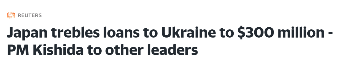 岸田文雄表示日本会继续与G7合作,对俄罗斯实施连串强力制裁,务求使得俄罗斯结束这场不人道侵略。他提到,日本计划增加对乌克兰的贷款,由原本的1亿美元,大幅增至3亿美元。另外他也表示,会向乌克兰提供由自卫队保管的防化学武器用面罩和保护衣,以及无人机等装备。