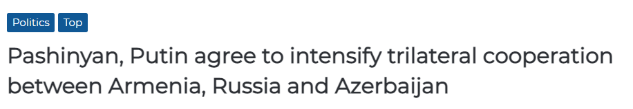 FX168财经报社(香港)讯 亚美尼亚总理帕什尼扬(Nikol Pashinyan)在19日出访俄罗斯,与总统普京展开会谈。经过沟通后,双方同意加强俄罗斯、亚美尼亚和阿塞拜疆三方在经济、军事等方面的固有合作基础。