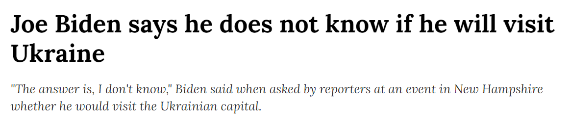 美国白宫新闻秘书普萨基(Jen Psaki)在18日曾提到:“让我重申,总统并未有前往基辅的计划。”普萨基也表示:“若有美国官员要去基辅,出于安全理由,我们不会从这里或任何地方,透露政府的哪位官员、是否要前往乌克兰以及何时出发。”