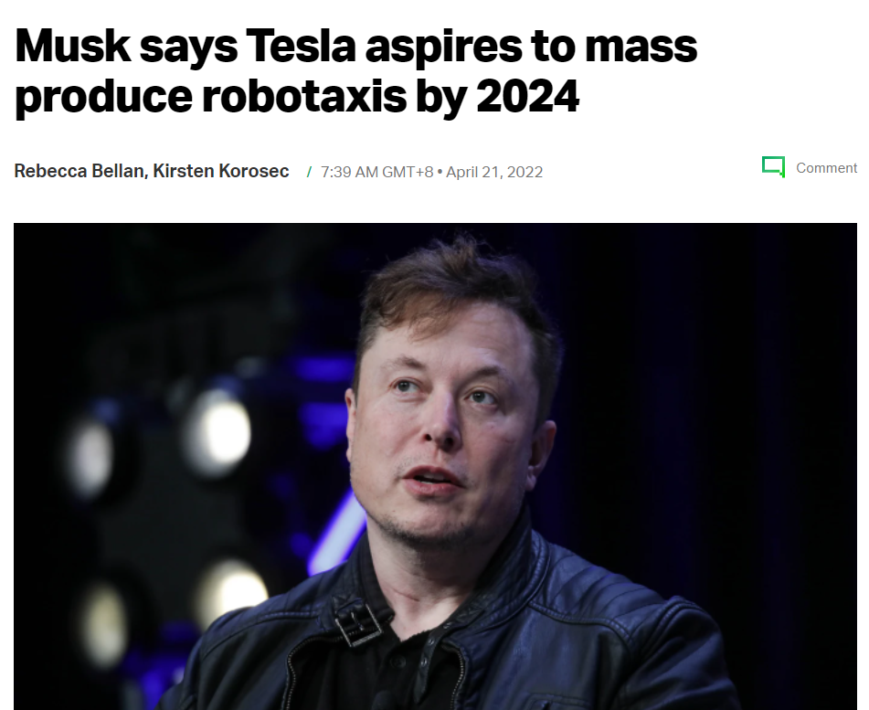 FX168财经报社(香港)讯 特斯拉首席执行官马斯克(Elon Musk)在2022年第1季财报电话会议上表示,特斯拉计划在2023年发表自驾计程车(Robotaxi),并且在2024年开始量产。马斯克日前也透露,Optimus人形机器人也即将问世。