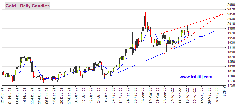 24K99讯 周四(4月21日)亚市盘中,黄金期货小幅下跌,期金现报1953美元/盎司附近。Kshitij咨询服务团队(Kshitij Consultancy Service)周四最新撰文,对黄金期货、白银期货、原油期货和铜期货后市走势进行前瞻分析。