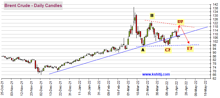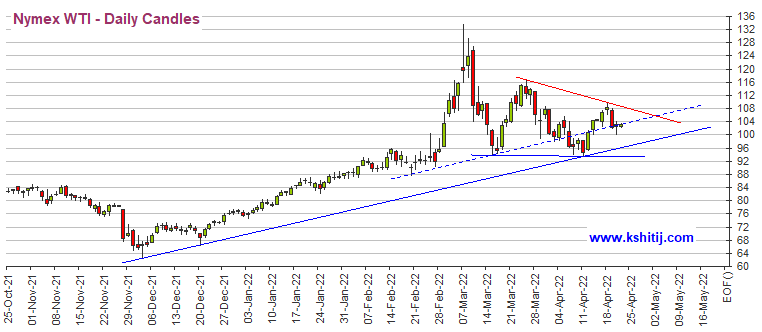 原油方面,Kshitij咨询服务团队表示,布伦特原油期货和WTI原油期货均出现下跌。从图表上看,布油和WTI油价仍然看涨,有望分别升至118-120美元/桶和116美元/桶,而短期支撑位见于106美元/桶和102美元/桶附近。