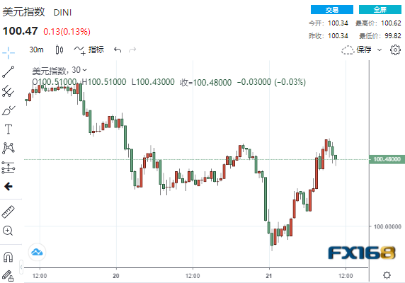 (美元30分钟走势图,来源:FX168)