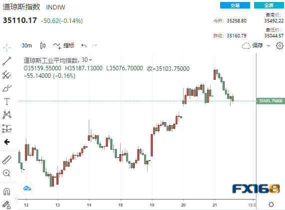 (道指30分钟走势图,来源:FX168)
