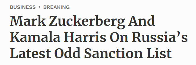 普京反制裁美国!俄罗斯对“美国副总统哈里斯、美副防长与扎克伯格”等90人实施无限期旅行禁令