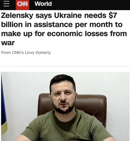 FX168财经报社(香港)讯 乌克兰总统泽连斯基(Volodymyr Zelensky)周四(4月21日)表示,乌克兰每月需要70亿美元的财政援助,以弥补俄乌战争造成的经济损失。
