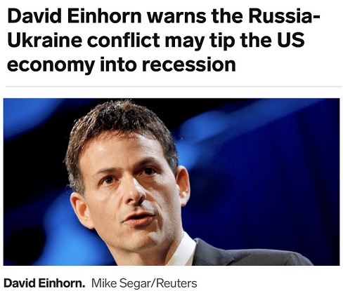 FX168财经报社(香港)讯 美国对冲基金大佬、绿光资本(Greenlight Capital)创始人大卫·埃因霍恩(David Einhorn)在本周致投资者的信中警告称,俄罗斯与乌克兰之间的战争可能会使美国经济陷入衰退,他并指责美联储(FED)在遏制通胀方面行动过于缓慢。