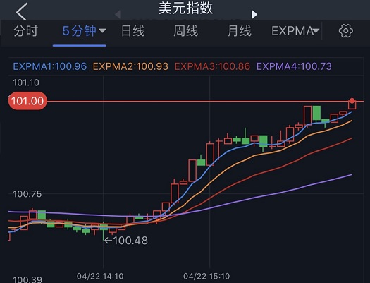 (美元指数5分钟图 来源:FX168)