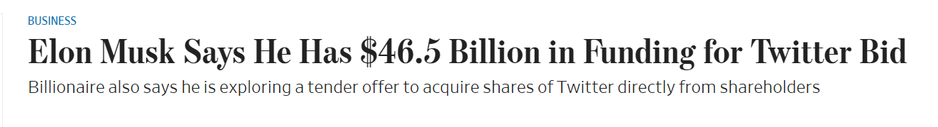 自从马斯克4月早些时候宣布已获得该社交平台9%的股份后,他撤回对公司董事会的任命以来,马斯克与推特一直在进行一场猫捉老鼠的争夺战。几天后,马斯克出价以每股54.20美元或430亿美元的价格,选择提出直接收购推特。