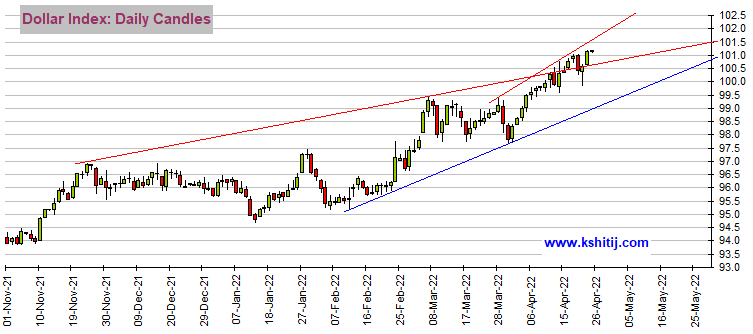 在美联储宣布可能在5月升息后,美元指数继续上涨并再次突破101,该指数可能会测试101.50-102附近的阻力。假如美元指数并未在102处止住升势,那么长期前景将看涨。