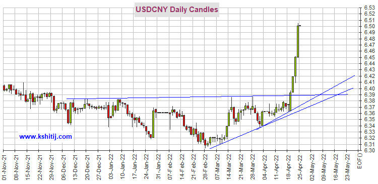 美元/人民币继续上涨,突破了我们预期的6.50。现在,下一个需要关注的水平是6.58。