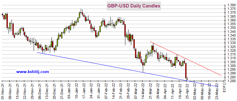 英镑/美元跌破1.29,现在几乎要测试1.28。如果跌破1.28,英镑/美元中期内将跌向1.27/26。