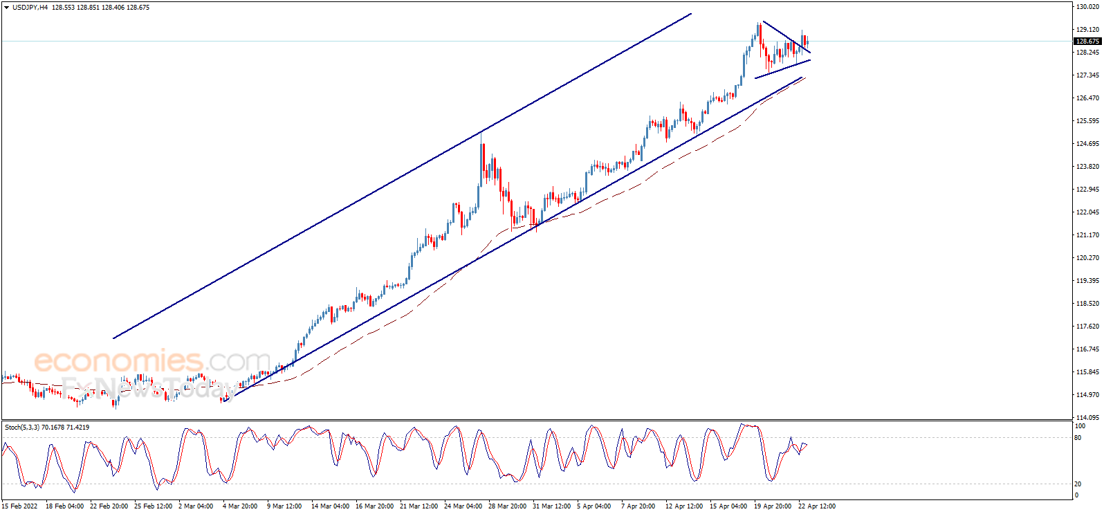 从4小时图来看,EMA 50指标继续支持美元/日元延续看涨走势。除非跌破128.15以及127.30,并且保持在这些水平下方,否则看涨预期仍将有效。