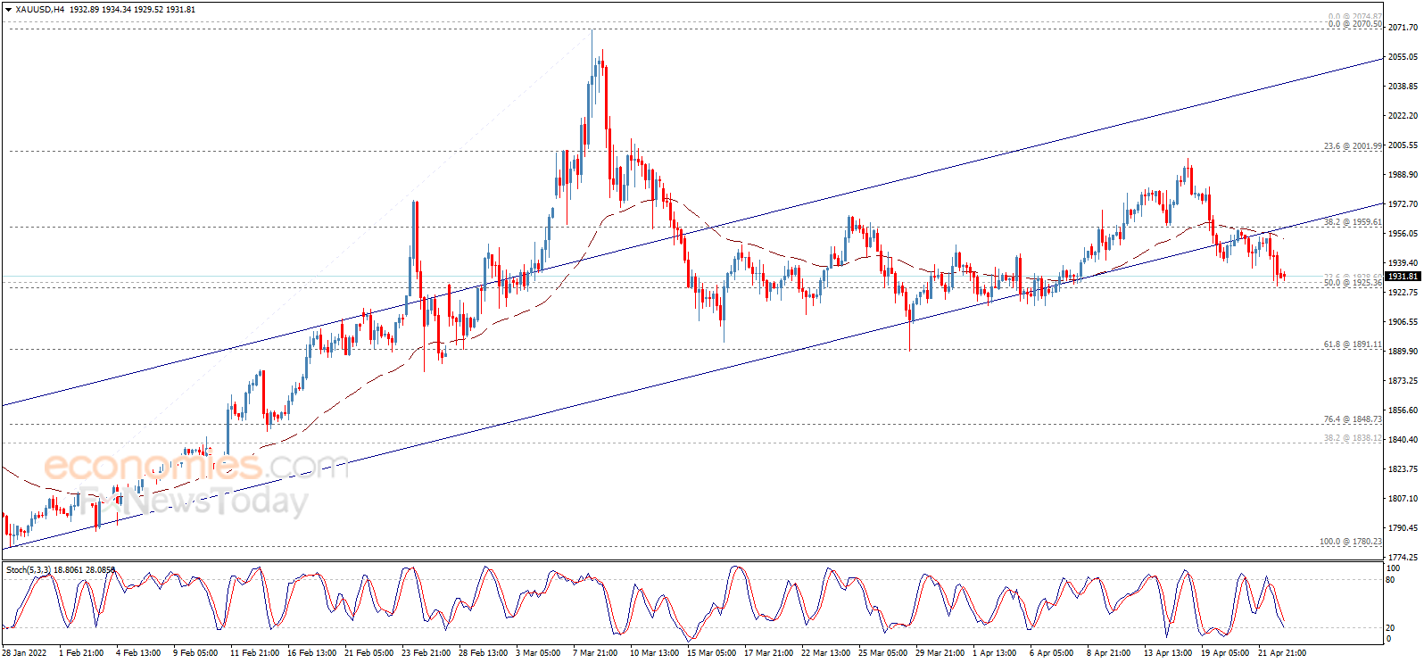 预计今日金价交投将位于支撑位1910.00美元/盎司以及阻力位1945.00美元/盎司之间。