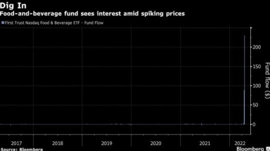 FX168财经报社(北美)讯 由于对全球粮食危机加剧和价格上涨的担忧,专注于食品和饮料的ETF自成立以来首次出现兴趣飙升。