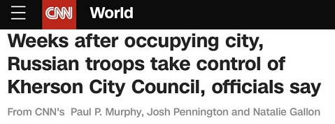 据美国有线电视新闻网(CNN)报道,赫尔松市政府的两名成员说,在占领赫尔松几周后,俄罗斯军队已经控制了赫尔松市议会。