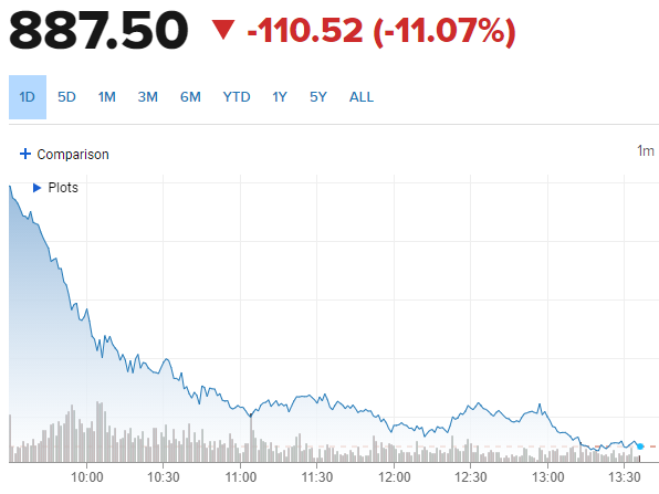 特斯拉今日的市值较昨日收盘已经下跌约1082亿美元,相当于跌掉了2.8个推特(Twitter)公司的市值。