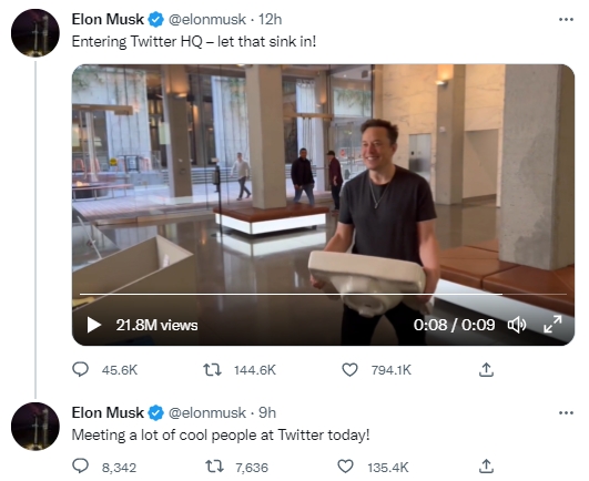 据此前消息,多家媒体引述知情人士透露,马斯克本周一在与融资行的视频会议上承诺将于本周五完成对推特的收购交易,并已通知其共同投资者在周五之前为收购推特的交易提供资金。
