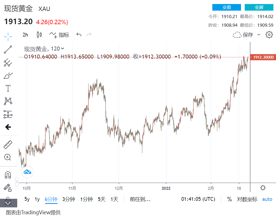 24K99讯 黄金24日亚市开盘后,短线朝着1915美元价位突破,现报在1913.20美元伺机而动。俄乌局势动荡,再加上日本黄金零售持续发酵,刺激黄金自隔夜起就持续走高。而有机构高管更提出展望,金价将升至3000美元水平。