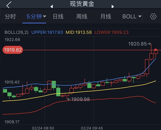 现货黄金刚刚站上1920美元/盎司关口,创逾一年来新高。