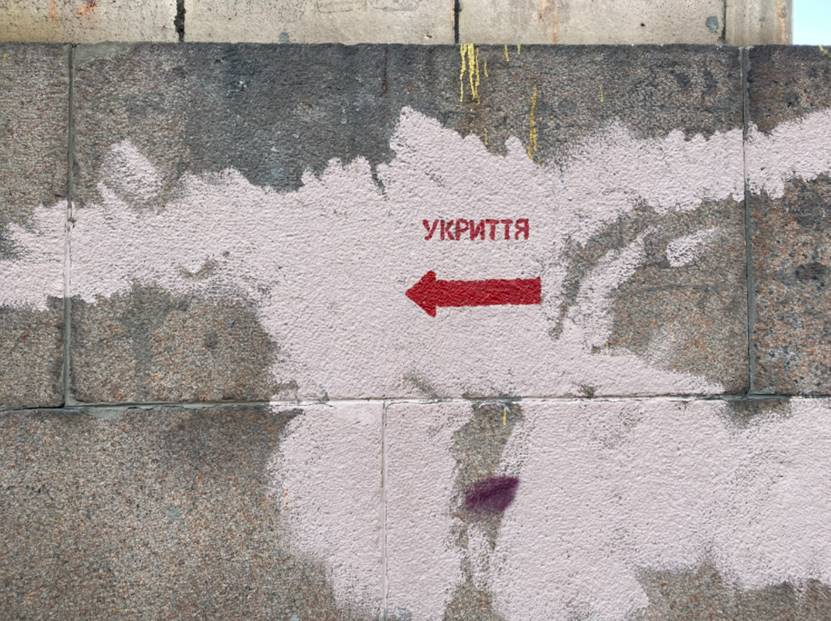 基辅居民被告知待在家里,打包必需品,以防突然离开。在城市的另一边,墙上画的红色箭头表示最近的防空洞的位置。这座城市在2014年该国东部的战争爆发后首次建起了这些建筑,但最近又重新粉刷了一遍,所以它们是不可错过的。