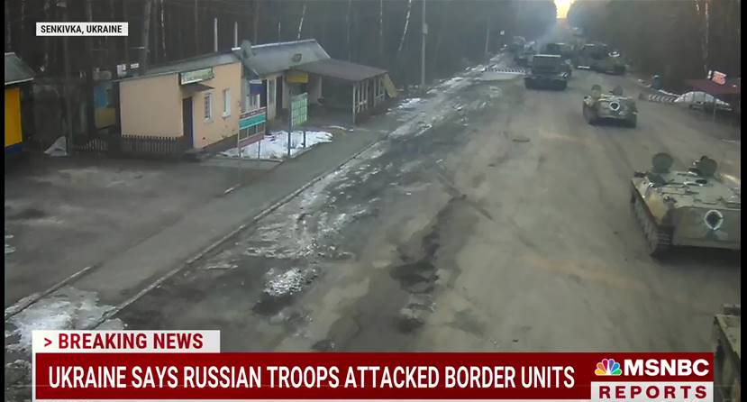 直播视频显示,坦克和其他装甲车通过白俄罗斯边境进入乌克兰。