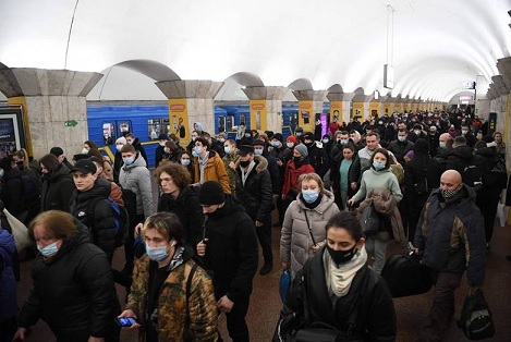 2月24日清晨,基辅地铁站里人潮涌动。许多人带着随身行李,待在地铁站躲避轰炸攻击。目前乌克兰基辅明斯克地铁站正常运行,但已对所有人免费开放。